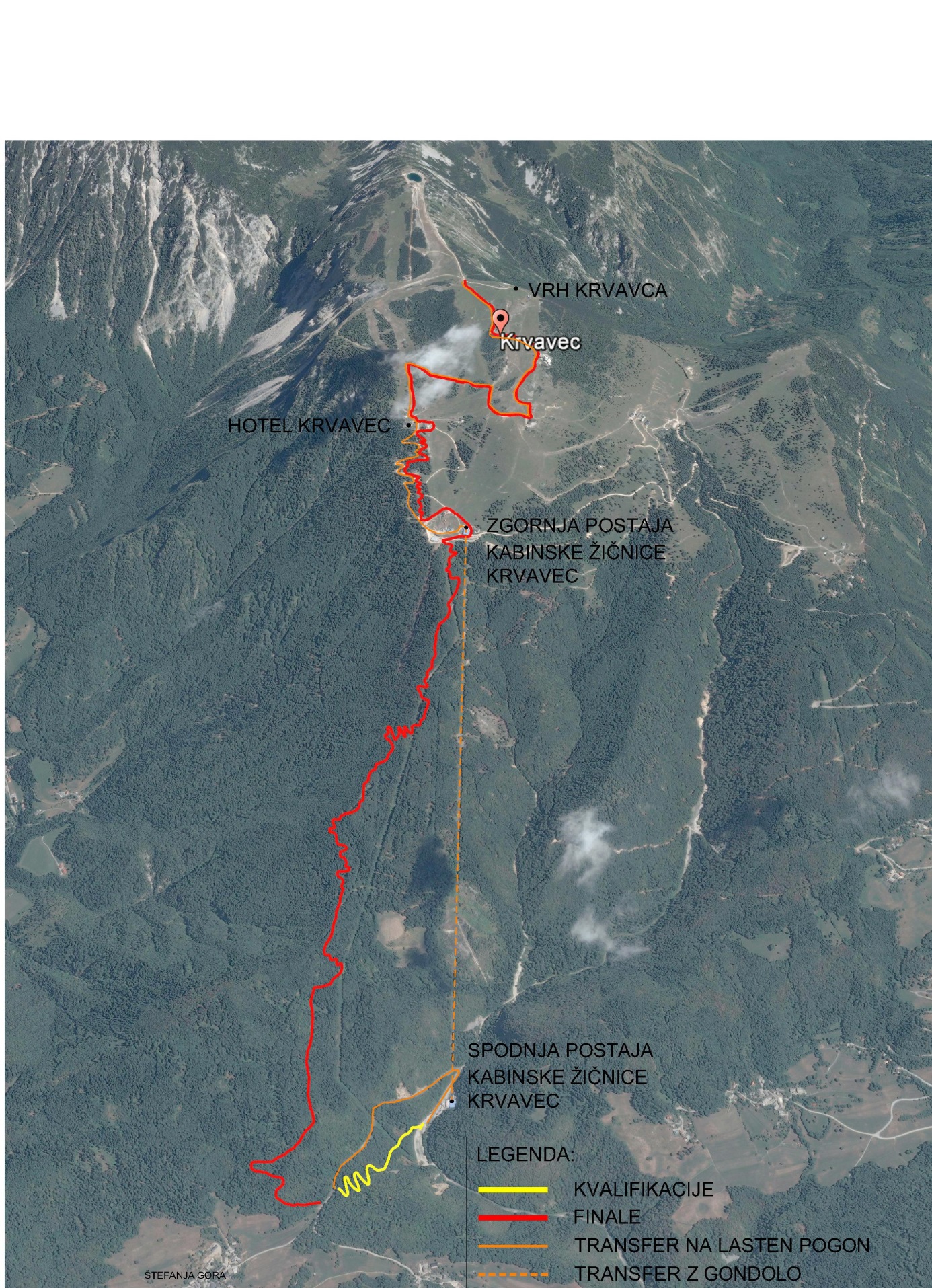 Kvalifikacije: Od ceste na Štefanji Gori do parkirišča pri spodnji postaji kabinske žičnice ( glej skico)